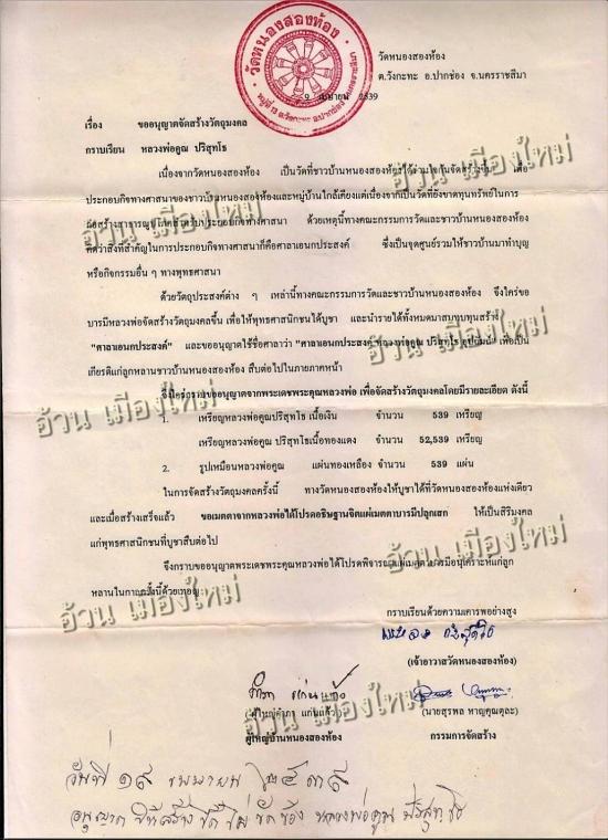 ++วัตถุประสงค์ : เพื่อสมทบทุนสร้างศาลาเอนกประสงค์ วัดหนองสองห้อง อ.ปากช่อง จ.นครราชสีมา