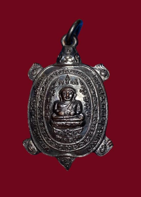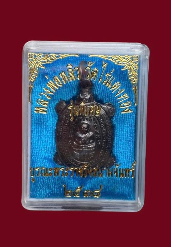 เหรียญพญาเต่าเรือน หลวงปู่หลิว วัดไร่แตงทอง รุ่นไตรมาส ฉลองอ ายุครบ 90 ปี เนื้อนวโลหะ ปี 2538 ตอกโค๊ตด้านหลัง สวยเดิมๆ กล่องเดิมๆ