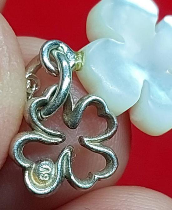 จี้ไข่มุกกับเปลือกหอยมุกแท้รูปใบโคลเวอร์ เนื้อเงิน พร้อมสร้อยเงิน 925 งานญี่ปุ่น