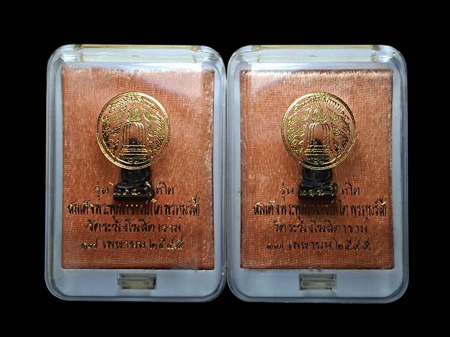รูปหล่อจำนวน 2 องค์ พระสมเด็จโต วัดระฆัง รุ่น 214 ปีชาตกาล พิมพ์เล็ก เนื้อนวะโลหะรมดำ พิธีใหญ่หลวงปู่หมุนและพระเกจิร่วมปลุกเสกหลายท่าน พร้อมกล่องเดิม