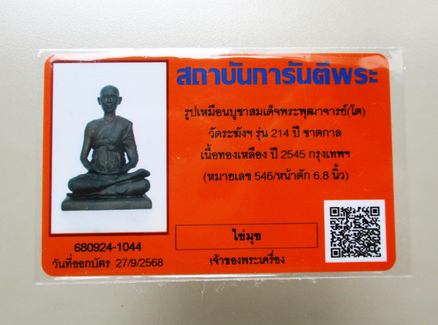 พระบูชารูปเหมือน สมเด็จพระพุฒาจารย์ ( โต พฺรหฺมรํงสี ) รุ่น 214 ปีชาตกาล วัดระฆังโฆสิตารามวรมหาวิหาร กทม. ผิวรมดำมันปู ห น้าตัก 7 นิ้ว ตอกโค๊ต ตอกเลข หลวงปู่หมุนร่วมปลุกเสก ปี 2545 !!
