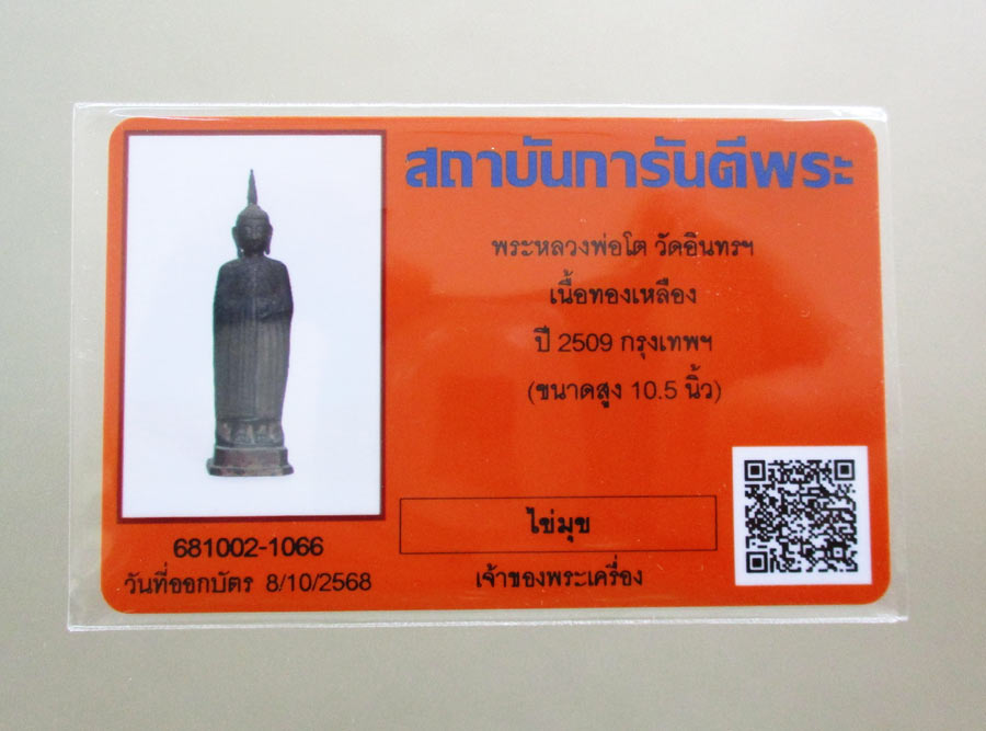 พระบูชา หลวงพ่อโต วัดอินทร์ บางขุนพรหม พิธีหล่อวันเสาร์ เดือน 5 ขึ้น 5 ค่ำ พ.ศ.2509 สูงรวมฐาน 12 นิ้ว เนื้อโลหะเทหล่อดินไทย ผิวแห้งหิ้ง บัตรการันตีระ !!