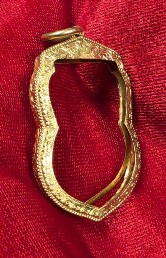 กรอบทองคำแท้ ทรงเสมาเล็ก แกะลาย ตีเกลียวด้านข้าง