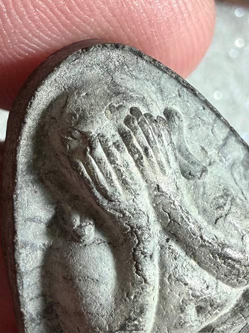 ปิดตาปลดหนี้หลังยันต์นะ(บล็อกแรก) ปี21 เนื้อใบลาน(แช่น้ำมนต์) หน้าขึ้นลายเสือขาวหลังดำ สวยมีเสน่ห์ พร้อมบัตรรับรองพระแท้