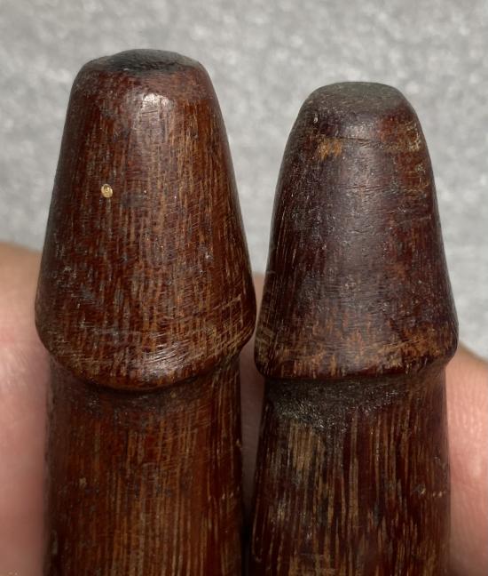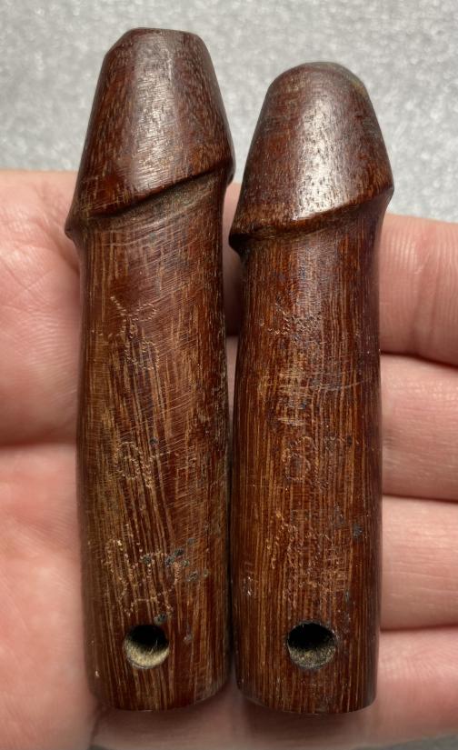 ปลัดขิกเนื้อไม้ จารเครื่อง ไม่ทราบที่ 2 ตัวค่ะ