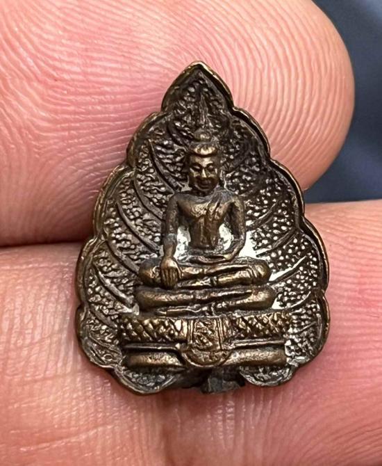 เคาะเดียวแดง พระหลวงพ่อสี่เข่า วัดศาลาครืน ปี 21 เนื้อสําริด พิมพ์ใบโพธิ์ ตอกโค็ด