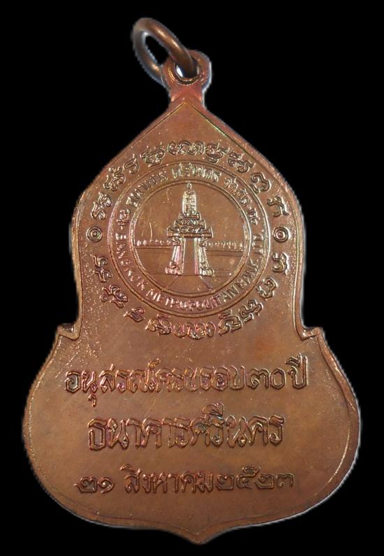 เหรียญพระแก้วศรีนคร ปี 2523 เนื้อทองแดงรมน้ำตาล สร้างในวาระครบ 30 ปี ของธนาคารศรีนคร (ปลุกเสกพิธีใหญ่อาทิ หลวงปู่ดู่ วัดสะแก, หลวงปู่โต๊ะ วัดประดู่ฯ, หลวงปู่ดูลย์ วัดบูรพาราม ฯลฯ) พระสภาพสวยเดิมๆ