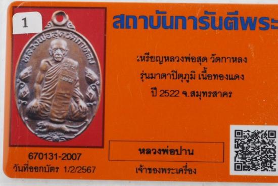 เหรียญมาตาปิตุภูมิ(บัวใหญ่) หลวงพ่อสุดวัดกาหลง ปี 2522 ทองแดง บัตรg
