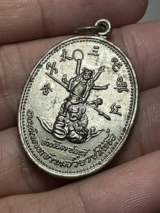 *ที่ฆ้อนมีอีกเยอะครับ เคาะเดียว* เหรียญเทพเจ้านาจาซาไท้จื้อ (ปางสามเศียรหกกร) เนื้อกะไหล่เงิน สวยเดิมสุดๆครับ รุ่น 2 จัดสร้างปี 2537 ศาลเจ้าหน่าจาอ่างศิลา ชลบุรี สวยเดิมครับ ห่วงครบ ผิวเดิม