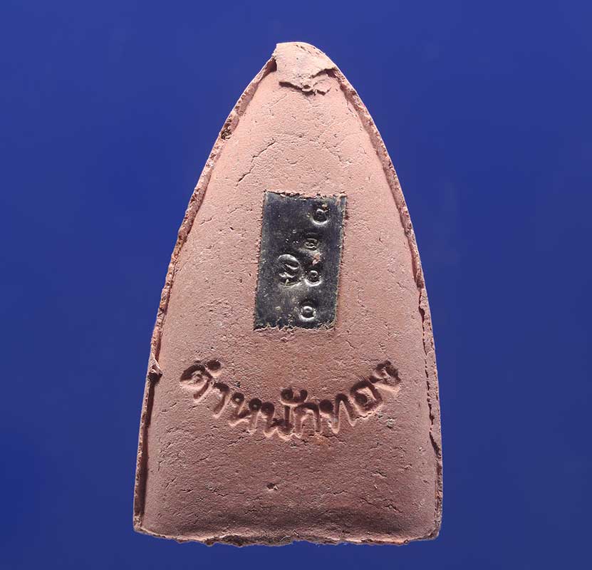 เนื้อผงสีแดง หลังติดแผ่นเงิน ตอกโค้ด ตอกเลข