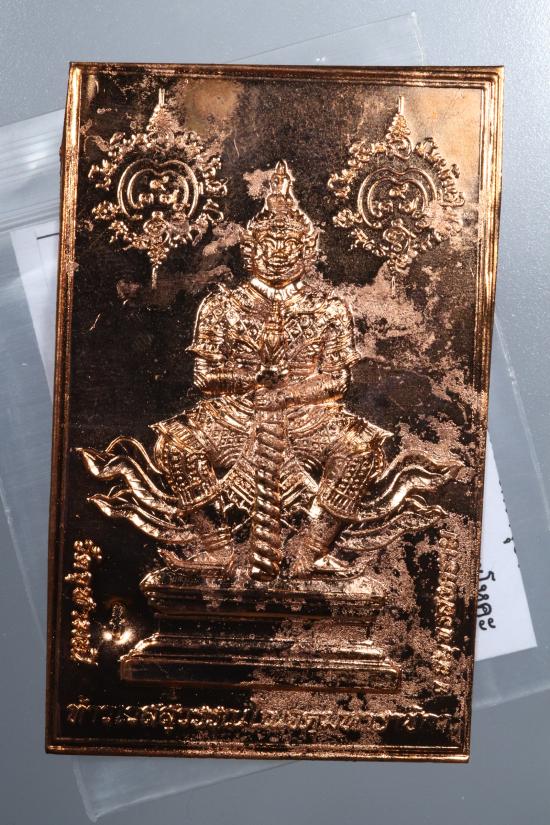 *แผ่นปั้มท้าวเวสสุวรรณ พระอาจารย์อิฏฐ์ วัดจุฬามณี จ.สุมทรสงคราม ปี 2554 เนื้อทองแดง ตอกโค้ด ขนาด 5 x 8 ซม.