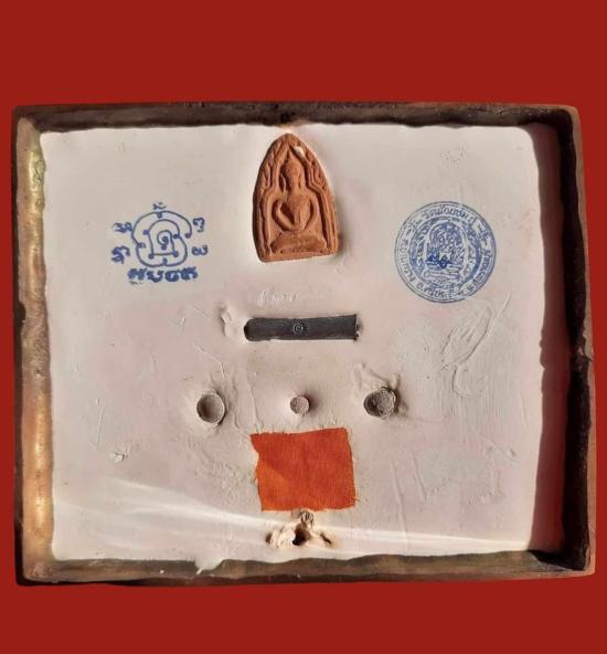 ~ใต้ฐานฝัง ตะกรุด 1นิ้ว 1 ดอก ลูกอมจิ๋ว 3ลูกเล็ก จีวร 1 ผืน พระผงขุนแผนเนื้อดินเผา 1องค์ ตราวัด อักขรลป.