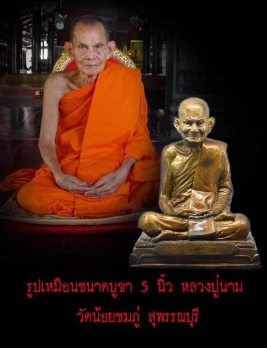-การบูชาลป.นามจากประสพการณ์ ด้วยหลวงปู่ไปเข้าฝันบ้าง บูชาหลวงปู่วางไว้ที่ร้าน เอาเหรียญท่านไปใช้บ้าง ดีเกินกว่าที่คาด บ้างขายของดี บ้างทำมาค้าขึ้น บ้างได้งานได้โอกาสใหม่ ยิ่งใหญ่กว่าเดิม เรื่องแปลก ๆ บ้างก็ได้โชคได้ลาภ ได้เงินทอง ความสำเร็จทั่วหน้า เพราะหลวงปู่ท่านสร้างพระให้เอาไปใช้ จะได้ดี ดี ดี กับทุกคน หลวงปู่สร้าง รูปหล่อ 5 นิ้ว มาให้บูชา ท่านก็ไม่สร้างเป็นพัน ๆ ท่านก็เกรงใจ ว่าเขามาขอ ไม่ทำให้เขาสักที ท่านจึงสร้างรูปหล่อ 5 นิ้ว เททองปฐมฤกษ์ วันนี้เลย ใช้ชนวนเหรียญเก่า หลวงปู่เหมือน เหรียญเก่า หลวงปู่นาม และชนวนเหรียญสตางค์แดง ชนวนศักดิ์สิทธิ์มากมาย ชนวนพิเศษรุ่นแรกนี้หาบูชายากมากกว่าจะได้ลป.นาม มาตอนนี้แรกพุ่งไปไกลมากที่ลูกศิษย์หามาบูชา สร้างตามลป.บอกเท่านั้นไม่สร้างตามเสียงญาติโยม มีน้อยมาก มีแค่ 1,999 องค์ หาบูชายากมากๆๆ สร้างวันที่27 ตค. 2555 ตรงกับวันขึ้น 12 ค่ำ เดือน พย.ทันลป. ลป.มรณภาพ ปี 2563