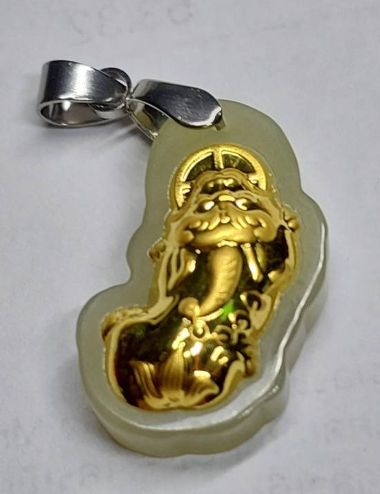 จี้หยกเรือสำเภา"หยกเหอเถียน"เคลือบทองคำแท้ 99.9%