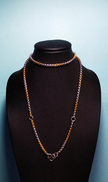 สร้อยลายผ่าหวาย 2 K หรือสองกษัตริย์ เเขวนพระ 3 องศ์ ขนาด 3.5 mm ยาว 26 นิ้ว