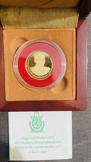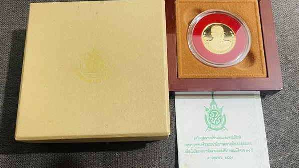 เหรียญกษาปณ์ที่ระลึกครองราชย์ ครบ 70 ปี ปี 2559 เนื้อทองคำขัดเงา พร้อมกล่องและอุปกรณ์เดิมๆ