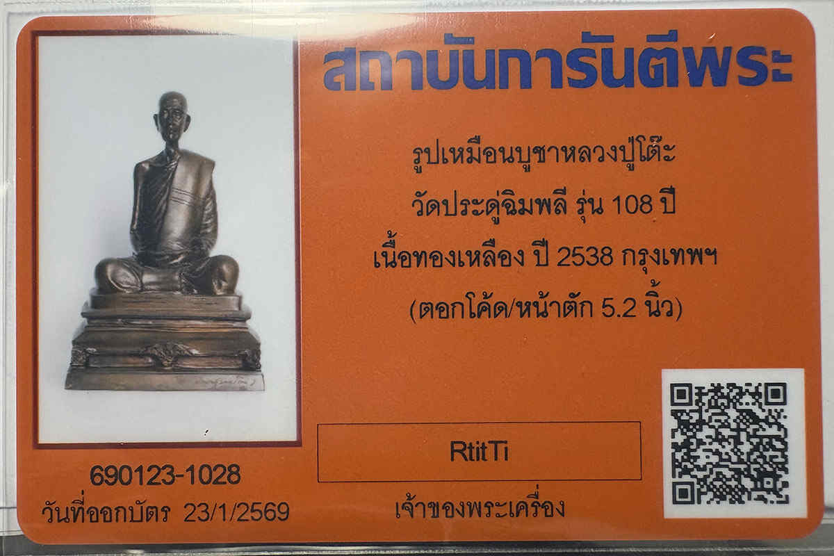 DeDEE รูปเหมือนบูชาหลวงปู่โต๊ะ สภาพสวยแชมป์ วัดประดู่ฉิมพลี รุ่น ๑๐๘ ปี เนื้อทองเหลือง ปี ๒๕๓๘ กรุงเทพฯ ดอกโค้ด/หน้าตัก ๕.๒ นิ้ว DeDEE