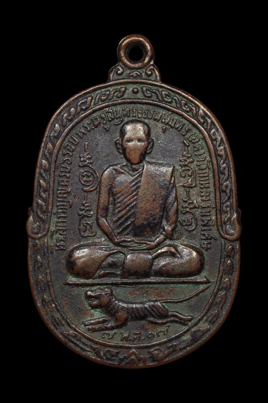เคาะเดียวแดง++เหรียญหลวงพ่อสุด วัดกาหลง รุ่นเสือเผ่น พิมพ์Bแขนขีด เนื้อทองแดง ปี 2517 มาพร้อมบัตรรับรองสภาพใช้