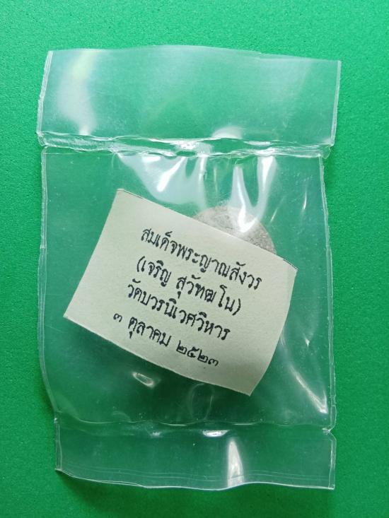 เคาะเดียว ในซองซีลเดิมพร้อมใบฝอย พระปิดตายันต์ดวงเล็ก เนื้อผงใบลานแช่น้ำมนต์(คราบน้ำมนต์บาง ๆ) สอดตะกรุดเงิน สมเด็จพระญาณสังวร(เจริญ สุวัฑฒโน ปธ.๙) วัดบวรนิเวศวิหาร ๒-๓ ตุลาคม ๒๕๒๓