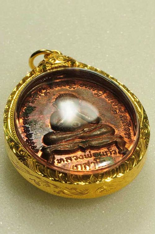 เหรียญสวยๆ ผิวไฟแดงๆๆ น้ำมันงาฉ่ำๆ มาพร้อมเลี่ยมทองยกซุ้มอย่างงาม