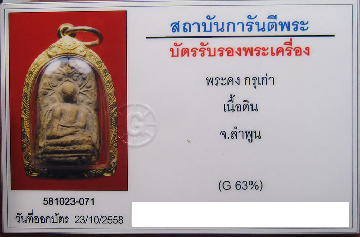 พระคงลำพูน กรุเก่า ฟอร์มสวย โพธิ์เด้ง เลี่ยมทองยกซุ้ม พร้อมบัตรรับรอง