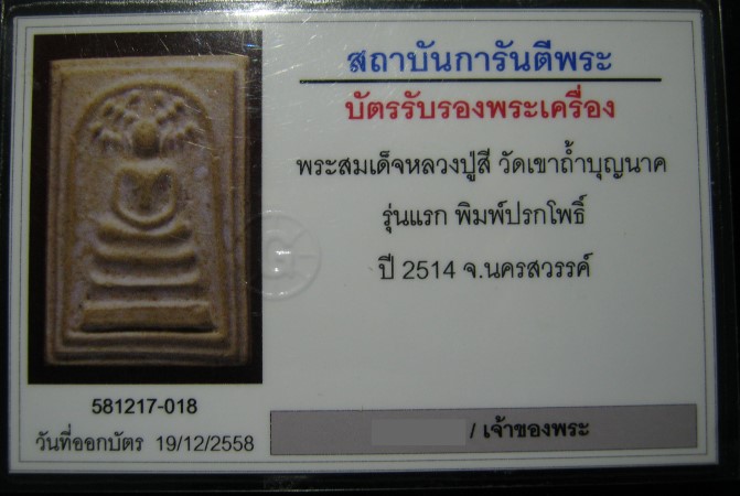| ชื่อพระเครื่อง | *** วัดใจ ต่ำกว่าทุน *** พระสมเด็จรุ่นแรกพิมพ์ปกโพธิ์ หลวงปู่สี วัดเขาถ้ำบุนนาก ปี 2514 สวยสมบูรณ์ + บัตรรับรองพระแท้ |