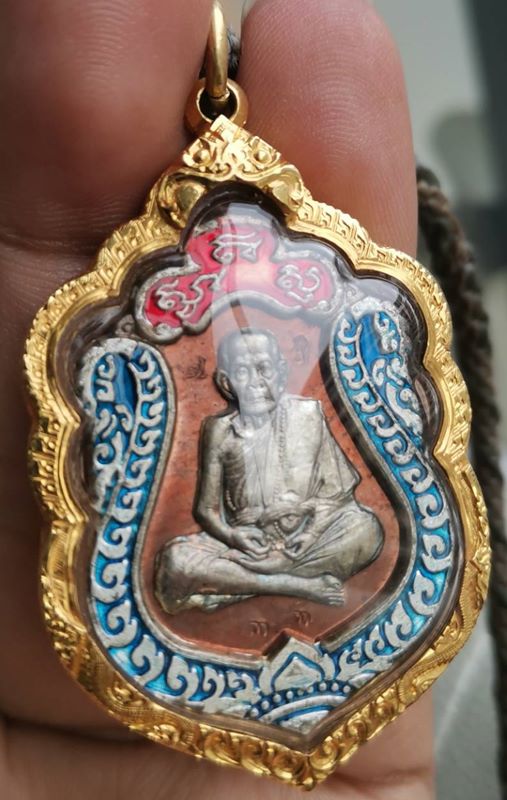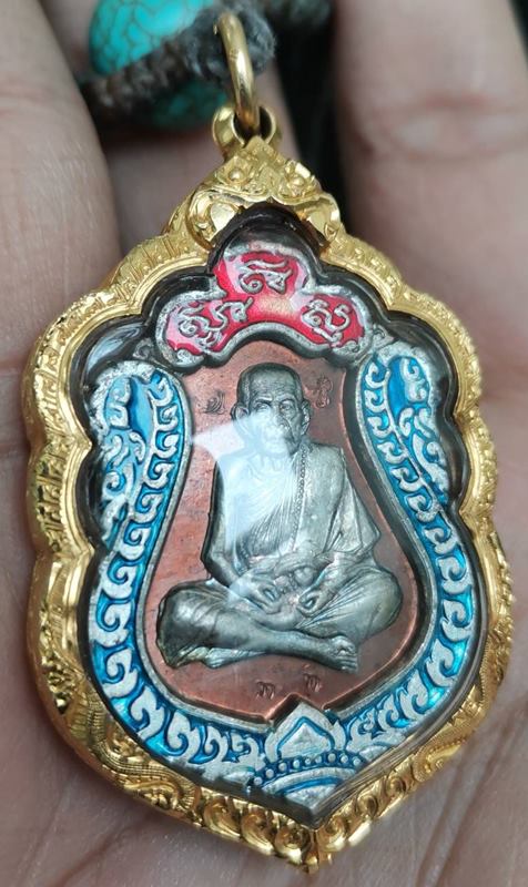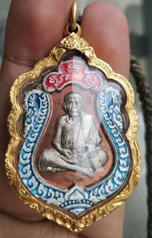 วัดใจเสมาสมปราถนาหลวงปู่หมุน เนื้อนวะหน้ากากเงินลงยา3ชั้นประกบเลข33พร้อมทอง