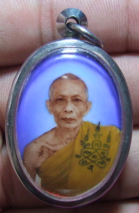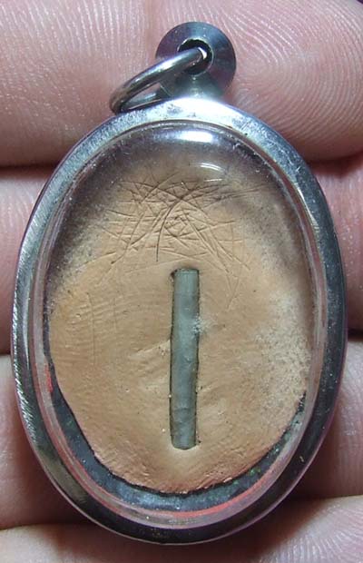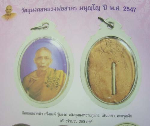 ล็อกเก็ตฉากสีฟ้าครึ่งองค์หลวงพ่อสาคร รุ่นแรก หลังอุดผงพราย,เกศา,ตะกรุดเงิน ปี47