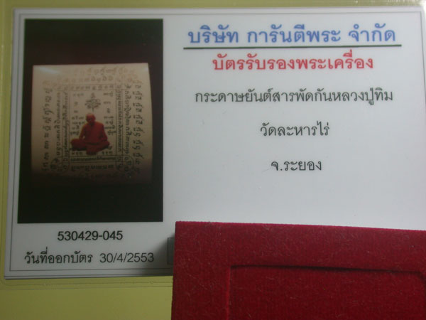 | ชื่อพระเครื่อง | กระดาษยันต์สารพัดกัน หลวงปู่ทิม พร้อมบัตร |
