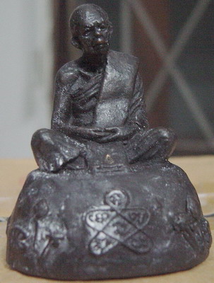 ในองค์รูปหล่อ บรรจุ กระดาษยันต์ห้าและ ติดสีผึ้งและน้ำมันพระเจ้าตาก อุดด้วยปูนปลาสเตอร์ |