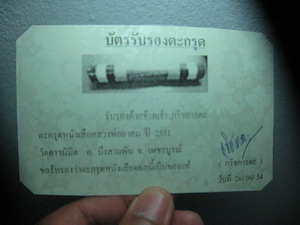 | รายละเอียด | เพิ่งบุกมาจากถ้ำเสือ แบบสดๆร้อนๆ กับตะกรุดหนังเสือหลวงพ่ออาคม วัดดาวนิมิต ปี 2531 ขนาด ขนาดยาว 3 นิ้ว พุทธคุณไม่ด้อยไปกว่าตะกรุดคู่ชีวิตของหลวงพ่ออาคมเลย เผลอๆจะเด็ดขาดกว่าด้วยซ้ำไป วันนี้ลงนำมาให้เคาะกัน ไม่มีใครเคาะก็คิดว่าเอามาโชว์ให้แฟนๆ กริชภารตะ ได้ยลโฉมก็แล้วกันครับ กับสภาพเดิมๆ หายากสุดๆ ใครพลาดโอกาสนี้แล้วจะเสียใจ ราคานี้ไม่แพงเกินไปครับ ยินดีรับประกันตามกฏครับ พิเศษผมทำบัตรรับรองตะกรุดขึ้นมาเอง โดยมีลายเซ็นต์ กริชภารตะ พร้อมลายปั๊มหัวแม่มือกันคนทำบัตรปลอมครับ ใครเคาะตะกรุดได้ไป ก็ได้บัตรรับรองตะกรุดแถมไปด้วย เผื่อวันข้างหน้าเกิดอยากจะให้คนอื่นเช่าต่อ จะได้ยินยันกับคนซื้อได้ว่า ตะกรุดดอกนี้เช่ามาจาก กริชภารตะ จริงๆ สำหรับตะกรุดหนังเสือนั้น แต่ก่อนใครเคยเช่าจากผมไป ถือว่าโชคดีสุดๆเพราะวันนี้ใครมีต่างหวงแหน แถมราคาเช่าหาก็แพงขึ้นมากครับ ใครอยากได้ตะกรุดที่เด็ดขาดจริงๆ เชิญเคาะครับ กริชภารตะ ชื่อนี้เป็นประกัน และขอขอบพระคุณแฟนๆทุกๆท่านที่บ่นถามหาและคิดถึงกัน วันนี้วัตถุมงคลของหลวงพ่ออาคม หายากขึ้นและก็แพงขึ้นครับ ฉนั้นกว่าจะได้มาในแต่ละชิ้น ยอมรับครับว่า เหนื่อยกว่าแต่ก่อนมากครับ กริชภารตะ ชื่อนี้ เป็นประกัน |