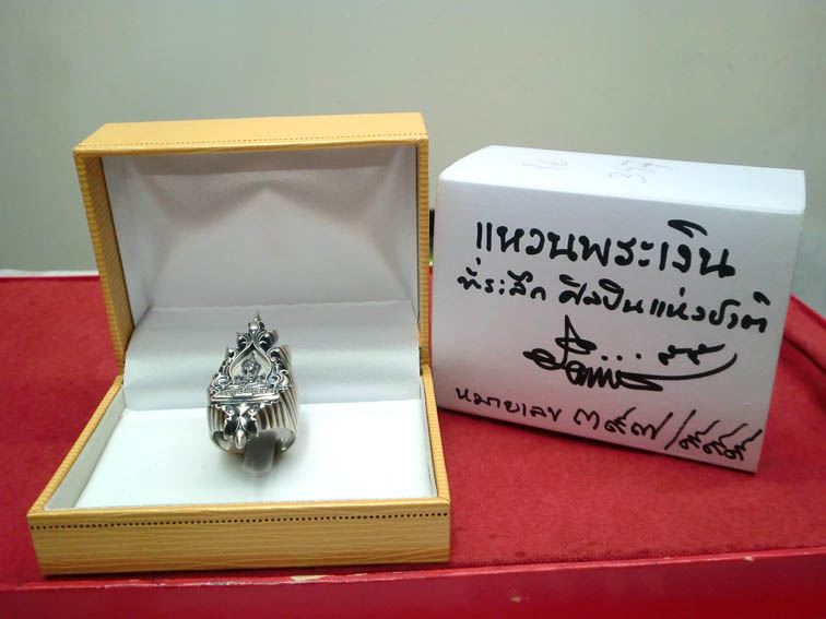 ***แหวนพระแก้ว***๓๙๗/๙๙๙ ที่ระลึกในโอกาศ อ.เฉลิมชัยได้รับรางวัลศิลปินแห่งชาติ ใครยังไม่มีเชิญได้ครับ แหวนมีน้อย เนื้อเงินแค่ ๙๙๙ วงเท่านั้นเฉพาะ ลูกศิษย์ที่เล่นภาพวาดของ อ.เฉลิมชัยก็แทบจะไม่พออยู่แล้ว แต่มีเหลือแค่ ๑๔๒ วง ที่ อ.เฉลิมชัย ท่านแบ่งให้โอกาศคนทั่วไป ที่ได้ไปร่วมชมผลงาน อ.เฉลิมชัย ที่พารากอน แล้วลงชือไว้ในสมุด บางท่านได้บางท่านไม่ได้ครับ ยอดลงชื่อไม่ต่ำกว่า 700คน อนาคตไม่ต้องถามถึงนับวันผลงานของ อ.เฉลิมชัย มีแต่แพงขึ้นๆครับ..