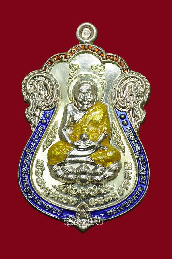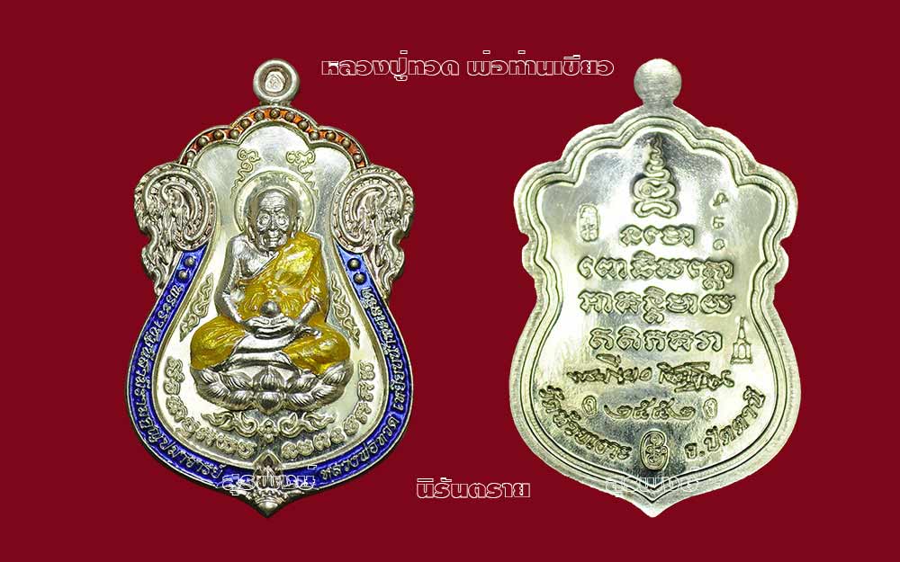 หลวงปู่ทวด พ่อท่านเขียว วัดห้วยเงาะ นิรันตราย ((เนื้อเงินลงยา 3 สี ปะฉลุสามชิ้น)) พุทธศิลป์ ที่งดงาม ((#136 + กล่องเดิม))