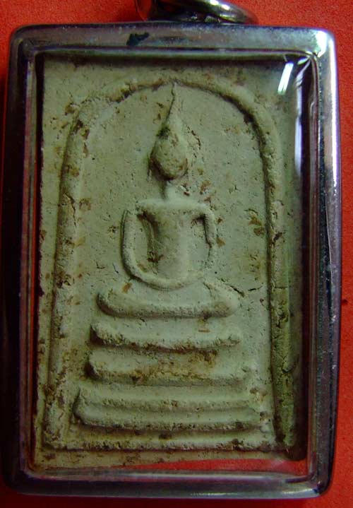 รุ่นนี้ถ้าสภาพสวยๆๆ ตรายางติดชัด ยกเว้นแขนซ้ายองค์พระ ติดไม่ค่อยชัด นอกนั้นติดชัดหมดครับ นับเป็นอีกรุ่นหนึ่งที่ปลอมเยอะมากครับ เช่าหาก็ระวังหน่อย คาบปลวกในพระหลวงพ่อพรหม มีเพียงรุ่นเดียวนะครับ คือ หลังตรายาง และมีเพียงสองพิมพ์ คือ พิมพ์ฐานเรียบกับฐานร่อง ถ้าเจอรูปเหมือน ระฆังใหญ่ ระฆังเล็ก หรือ สด สามชั้น หรือสองหน้า มีคาบปลวก พวกนี้เก๊หมดนะครับ ที่เจอบ่อยได้ทั่วไปคือ พิมพ์ระฆังใหญ่ เป็นรุ่นที่เก๊นิยม รุ่นนี้เป็นรุ่นที่จะเอาไปอ้างกันเยอะมากครับ โดยเฉพาะของปลอม เช่าหาก็ระวังหน่อยนะครับ ผมแบ่งให้เช่าพร้อมกับกรอบสแตนเลสนะครับ