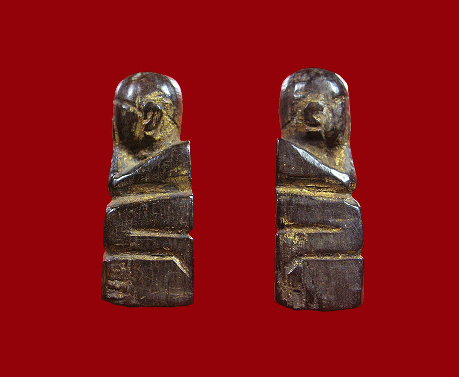 ปิดตา เนื้อไม้แกะ มีจาร ปิดทองเก่า