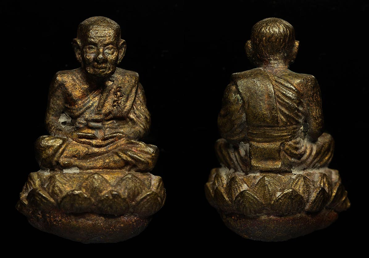 พระรูปเหมือนหล่อเบ้าทุบแบบโบราณ องค์นี้ตอกสองโค๊ต หมายเลข๕๐๐ ก้นกลมเกลี้ยงสวยมาก คราบเบ้าตามซอก ผิวไฟจัดๆ เนื้อออกนวะแก่ทองนิดๆ พิมพ์สมบูรณ์มากไม่มีเว้าแหว่ง ชัดมาก