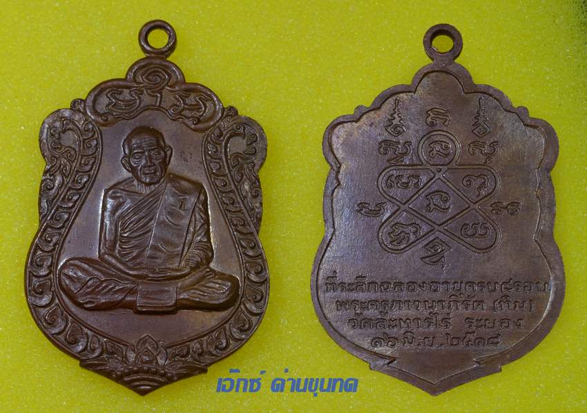 เหรียญหลวงปู่ทิม อิสริโก รุ่น เสมา8รอบ ปี2518 เนื้อทองแดง พิมพ์สองขยัก ตอกโค๊ต อุ สภาพสวย ผิวสวย เดิมมากครับ ก่อนจะย่างเข้าสู่ปี พ.ศ 2518 คณะศิษย์นำโดยคุณชินพร สุขสถิตย์ ได้ปรึกษาหารือกันว่า จะร่วมกันจัดงานฉลองอายุให้กับหลวงปู่ทิมในวันที่ 16 มิถุนายน 2518 เนื่องในโอกาสที่หลวงปู่จะมีอายุครบ 8 รอบหรืออายุ 96 ปี ซึ่งถือว่าเป็นการจัดงานวันเกิดให้กับท่านเป็นครั้งเเรก ด้วยโดยงานนี้ คุณชินพรได้รับมอบหมายให้ดำเนินการจัดสร้างวัตถุมงคลเพื่อให้มอบให้เป็นที่ระลึกเเด่ลูกศิษย์ลูกหาเเละสาธุชน ซึ่งคาดกันว่าจะเดินทางมาร่วมงานกันในวันนั้นอย่างมืดฟ้ามัวดิน ดังนั้น การดำเนินการจัดสร้างในครั้งนี้ คุณชินพรจึงต้องวางเเผนอย่างละเอียดรอบคอบเป็นพิเศษซึ่งนอกเหนือจากจะต้องให้เพียงพอต่อทุกคนที่มาร่วมงานเเล้ว วัตถุมงคลนี้จึงถือได้ว่าเป็นชุดสำคัญที่เดียว ด้วยเหตุนี้การจัดสร้างวัตถุมงคลชุดเเปดรอบนี้จึงต้องใช้เงินลงทุนสูงถึง 9 เเสน 8 หมื่นบาท หรือเกือบล้าน ซึ่งเงินร่วมล้านบาทในปี พ.ศ 2518 ถ้าเทียบสมัยนี้น่าจะเกือบร้อยล้านก็ว่าได้ ถือว่าเป็นการสร้างวัตถุมงคลที่ใช้เงินจำนวนมหาศาลในวัดเล็กๆ ไม่มีวัดใดกล้าลงทุนมากมายถึงขนาดนี้มาก่อน จำนวนการสร้างเหรียญชุดเเปดรอบ หลวงปู่ทิม วัดละหารไร่ จ.ระยอง 1.เหรียญฉลุเสมาลงยาหน้าทองหลังทองสร้างจำนวน 79 เหรียญทำบุญเหรียญละ 3000บาท 2.เหรียญฉลุเสมาลงยาเนื้อเงินหลังเงินหน้าทอง สร้างจำนวน 169 เหรียญ กลับเป็นอายุหลวงปู่ได้ 96 ทำบุญเหรียญละ 1000 บาท 3.เหรียญฉลุเสมาลงยาหน้าเงินหลังเงินสร้างจำนวน 879 เหรียญ ทำบุญเหรียญละ 250 บาท 4. เหรียญฉลุเสมาลงยาหน้าเงินหลังนวโลหะ สร้างจำนวน 2,297 เหรียญ ทำบุญเหรียญละ 200 บาท 5.เหรียญเสมาเนื้อทองเเดง สร้างจำนวน 22,297 เหรียญ บูชาเหรียญละ 30 บาท เหรียญเสมาเเปดรอบ ทุกเนื้อนั้นหลังจากสร้างเสร็จเป็นที่เรียบร้อยเเล้วคุณชินพรจีงได้นำไปถวายเพื่อให้หลวงปุ่ทิมปลุกเสกเดี่ยวภายในกุฎิท่าน เป็นเวลาถึง 45 วัน เมื่อครบกำหนดเเล้วจึงได้เดินทางกลับมารับไปเพื่อดำเนินการตอกโค๊ดกันปลอมที่กรุงเทพฯ ก่อนจะนำออกให้ประชาชนบูชาเพื่อรวบรวมปัจจัยไปสร้างศาลาการเปรียญภาวนาภิรัตทีคั่งค้างอยุ่จนเเล้วเสร็จ สำหรับเหรียญฉลุเสมาเเปดรอบเป็นรูปเเบบเหรียญที่ยังไม่มีผู้ใดเคยสร้างขึ้นมาก่อนเลย นับตั้งเเต่ปี พศ 2500 เป็นต้นมา ซึ่งคุณชินพรได้เเรงดลบันดาลใจมาจาการได้พบเห็นเหรียญเงินลงยาของหลวงพ่อคง วัดชำป่าง่าม จังหวัดฉะเชิงเทรา เเล้วเกิดการชอบใจเห็นว่าสวยงามเเปลกตาดี จึงนำมาดัดเเปลงออกเเบบด้วยการฉลุ