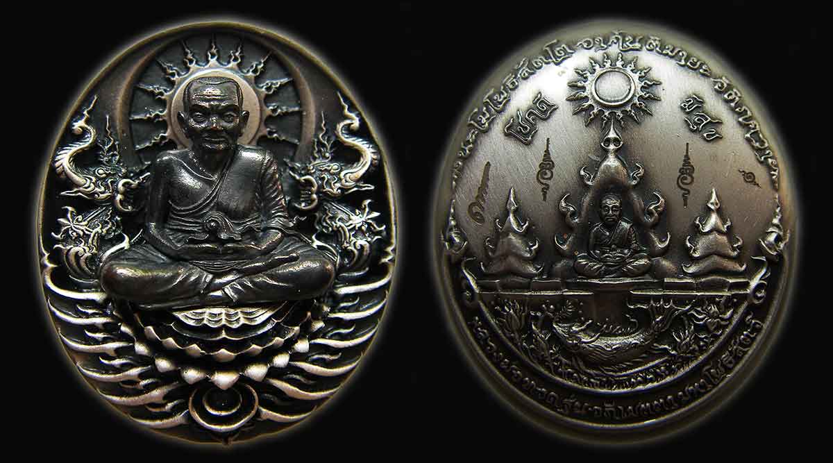 เหรียญหลวงปู่ทวดรุ่นอภิเมตตา มหาโพธิสัตว์ พิมพ์เล็ก โชคดี มีสุข เงินองค์นวะ หมายเลข1