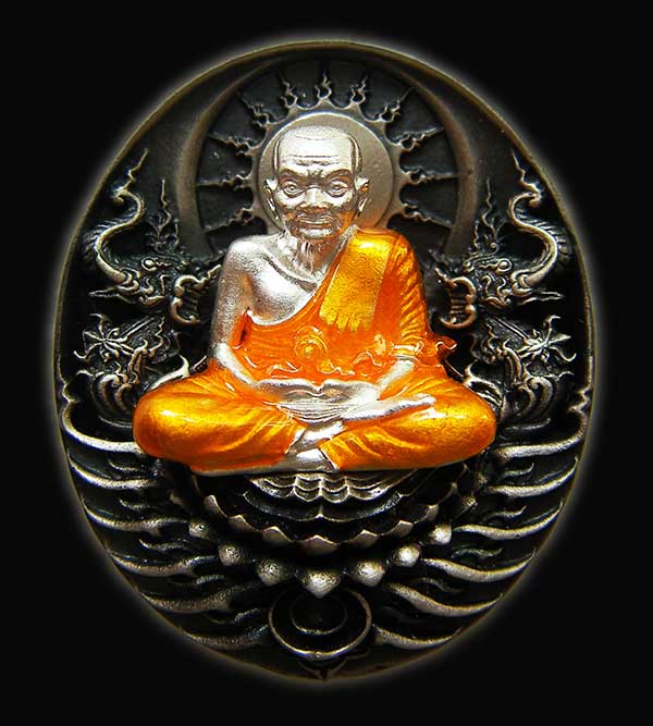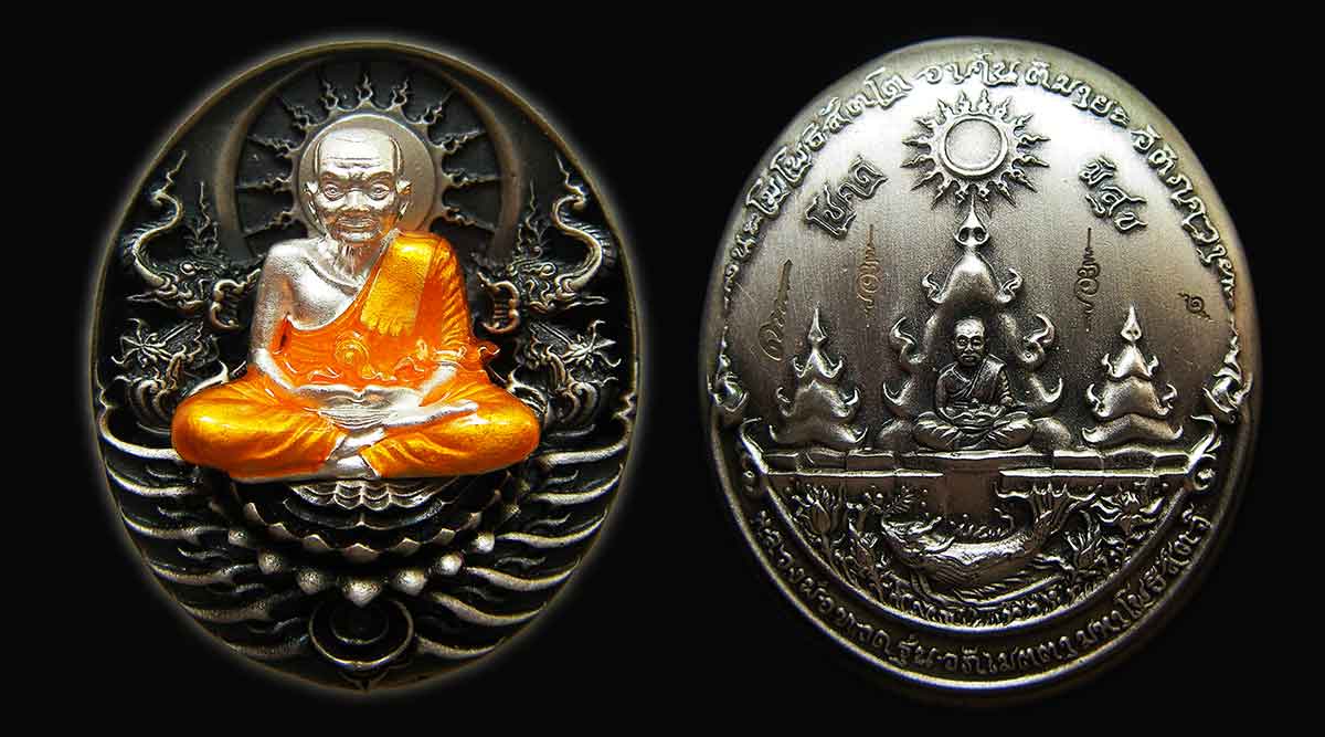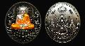 เหรียญหลวงปู่ทวดรุ่นอภิเมตตา มหาโพธิสัตว์ พิมพ์เล็ก โชคดี มีสุข เนื้อเงินลงยาจีวีสีเหลือง หมายเลข1