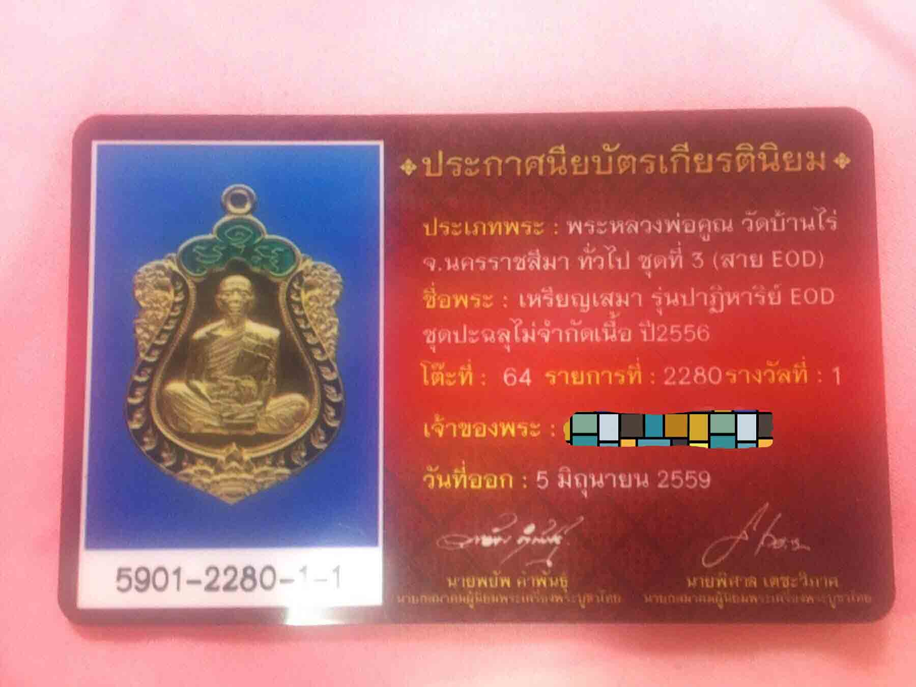 ***๑ใน๙เหรียญหายาก*** เหรียญเสมา ปาฏิหารย์ EOD หลวงพ่อคูณปี 2556 ปะฉลุเนื้อทองคำ เลข๙ สุดยอดมหามงคล เป็นอีกเหรียญที่เจตนาการสร้างดีและชัดเจน พิธีพุทธาภิเษกยิ่งใหญ่เข้มขลัง ดีกรีแชมป์งานมหกรรมการประกวดการอนุรักษ์ พระบูชา พระเครื่องและเหรียญพระคณาจารย์ทั่วประเทศ จัดโดยสมาคมผู้นิยมพระเครื่องพระบูชาไทย วันที่ 5 มิถุนายน 2559