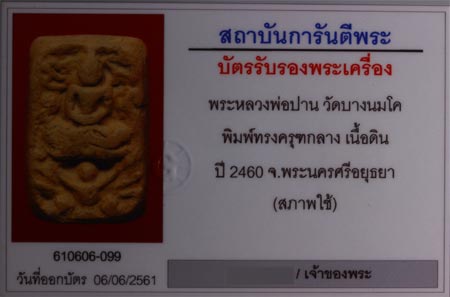 --พระหลวงพ่อปาน วัดบางนมโค พิมพ์ทรงครุฑกลาง เนื้อดิน ปี2460 จ.อยุธยาฯ