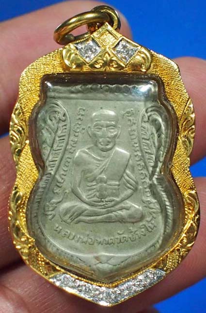 เหรียญหลวงปู่ทวดรุ่นเลื่อนสมณศักดิ์ ปี 2508 เนื้ออัลปาก้า เลี่ยมกรอบทองคำแท้ฝังเพชร พร้อมบัตรรับรองจากสถาบันการันตีพระ