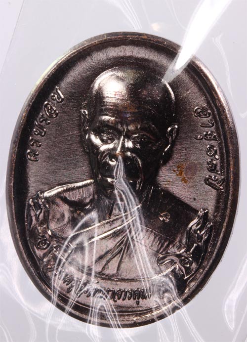 เหรียญโบว์ที่ระลึกงานผูกพัทธสีมา พิมพ์ครึ่งองค์ หลวงพ่อสิน วัดละหารใหญ่ เนื้อทองแดงจ.ระยอง ปี 2558