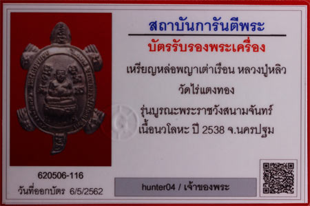 รับประกันพระแท้ตามมาตรฐานสากลตลอดชีพ รับประกันตามกฎกติกาเว็บไซต์g-praหากส่งตรวจสอบแล้วพระไม่แท้ยินดีรับคืนเต็มจำนวน