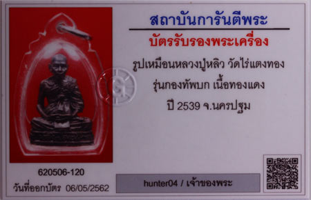 รูปหล่อ รูปเหมือน อุดกริ่ง ต๊อกโค๊ด หลวงปู่หลิว วัดไร่แตงทอง เนื้อทองแดง จ.นครปฐม กองทัพบกสร้างปี2539