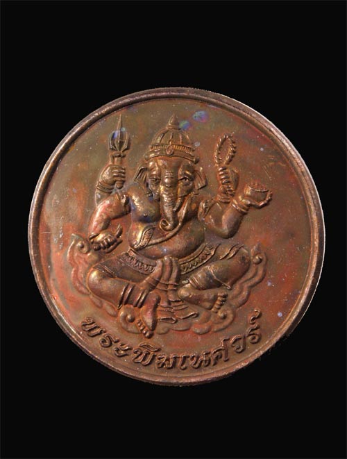 เหรียญพระพิฆเนศวร์ หลวงปู่หงษ์ พรหมปัญโญ วัดเพชรบุรี(สุสานทุ่งมน) เนื้อทองแดง จ.สุรินทร์+++4+++