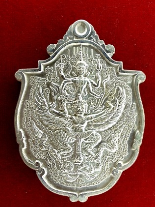 เหรียญนารายณ์ทรงครุฑ รุ่นแรก หลวงปู่กาหลง วัดเขาแหลม จ.สระแก้ว เนื้อเงิน ตอกโค๊ด หมายเลข 153