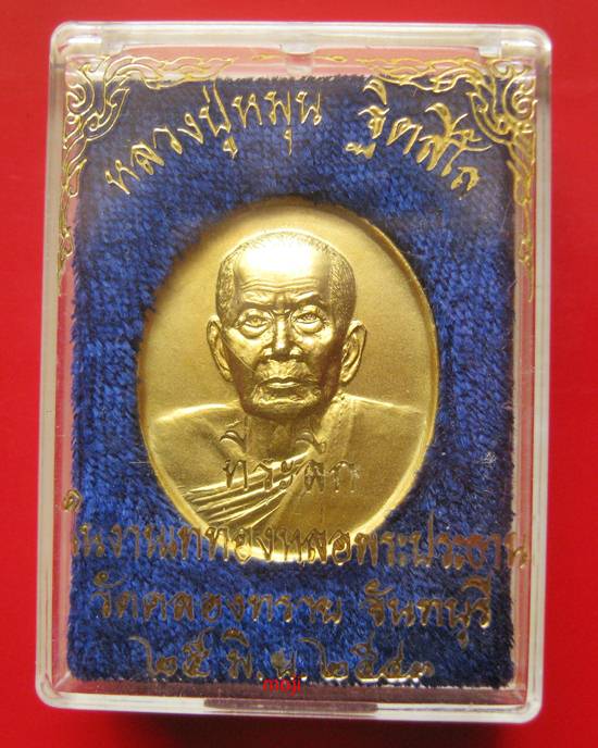 เหรียญกลมรูปไข่ เนื้อกะไหล่ทอง หลวงปู่หมุน วัดบ้านจาน ออกวัดคลองทราย จ.จันท บุรี ปี 43 พร้อมกล่องเดิม สวย ๆๆ