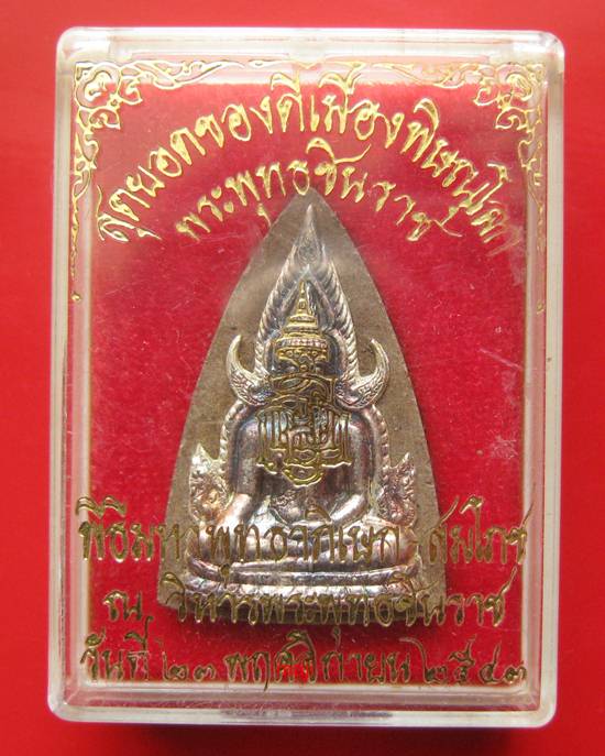 พระพุทธชินราช ญสส เนื้อว่านหน้ากากเงิน หลวงปู่หมุน วัดบ้านจาน ร่วมพิธีพุทธาภิเษก สมเด็จพระญาณสังวร สมเด็จพระสังฆราช สกลมหาสังฆปรินายก มีพระเมตตาคุณประทานพระอนุญาตให้จัดสร้าง พิธีมหาพุทธาภิเษก ครั้งยิ่งใหญ่ของเมืองพิษณุโลก ใน ปี 2543 ณ วิหารพระพุทธชินราช เมื่อวันพฤหัสบดีที่ 23 พฤศจิกายน 2543 พระเกจิอาจารย์ผู้ทรงคุณวุฒิวิทยาคุณทั่วประเทศ นั่งบริกรรมปลุกเสก 4 ผลัดๆ ละ 21 รูป รวม 84 รูป นานถึง 12 ชั่วโมง พิธีกรรมเข้มขลังศักดิ์สิทธิ์ตามหลักโบราณจารย์ รายนามเกจิและพระคณาจารย์ 84รูปที่ร่วมอธิษฐานจิต อาทิ 1.หลวงปู่หมุน วัดบ้านจาน -เกจิสุดยอดครับ 2.หลวงพ่อพูล วัดไผ่ล้อม 3.หลวงพ่ออุตตมะ วัดวังวิเวการาม 4.หลวงปู่คำพันธ์ วัดธาตุมหาชัย 5.หลวงพ่อไสว วัดปรีดาราม 6.หลวงพ่อแย้ม วัดสามง่าม 7.หลวงปู่เจือ วัดกลางบางแก้ว 8.สมุห์อวยพร วัดดอนยายหอม 9.หลวงปู่หลวง วัดป่าสำราญนิวาส 10.หลวงพ่อสง่า วัดบ้านหม้อ 11.หลวงปู่ฤทธิ์ วัดชลประทานราชดำริ 12.หลวงปู่ท่อน วัดศรีอภัยวัน 13.หลวงพ่อหวล วัดพุทไธสวรรค์-----สุดยอดหลวงปู่ ด้านเหล็กไหล เมตตาค้าขาย คงกระพัน 14.หลวงพ่อเพิ่ม วัดป้อมแก้ว 15.หลวงพ่อเก๋ วัดปากน้ำ 16.หลวงพ่อสาคร วัดหนองกรับ 17.หลวงพ่อกลั่น วัดเขาอ้อ 18.หลวงพ่อเอียด วัดไผ่ล้อม 19.หลวงปู่เหรียญ วัดอรัญบรรพตคีรี 20.พระมหาโพธิ์ วัดคลองมอญ 21.หลวงปู่ธีร์ วัดมิ่งเมือง 22.หลวงพ่อสวัสดิ์ สำนักสงฆ์เม้าสุขา 23.หลวงปู่ตี๋ วัดหลวงราชาวาส 24.หลวงพ่อเขียว วัดระเว 25.หลวงพ่อพรหม วัดบ้านสวน 26.หลวงพ่อวิชัย วัดถ้ำผาจม 27.เจ้าคุณจวบ วัดระฆังโฆสิตาราม 28.หลวงพ่อลำใย วัดทุ่งลาดหญ้า 29.เจ้าคุณธงชัย วัดไตรมิตร 30.หลวงพ่อสมพงษื วัดใหม่ปิ่นเกลียว 31.หลวงพ่อเฉิลม วัดพระญาติการาม 32.หลวงพ่อพูลทรัพ์ วัดอ่างศิลา 33.หลวงพ่อลมูล วัดเสด็จ 34.หลวงพ่ออุ้น วัดตาลกง 35.หลวงปู่รอด วัดสันติกาวาส 36.ครูบาน้อย วัดศรีดอนมูล ฯลฯ