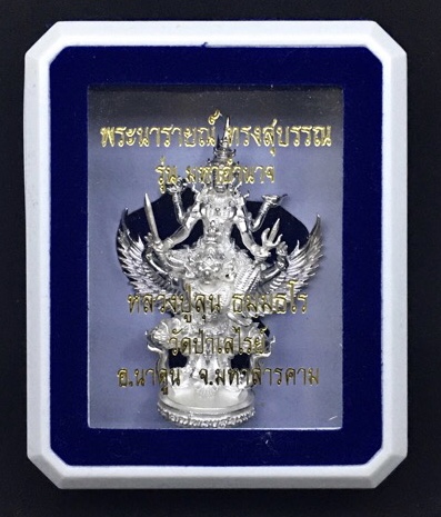 พระนารยณ์ทรงสุบรรณ รุ่นมหาอำนาจ หลวงปู่ลุน ธมฺมธโร วัดป่าเลไรย์ อ.นาดูน จ. มหาสารคาม เนื้อเงิน หมายเลข 78 สร้างเพียง 199 องค์เท่านั้น สร้างปี พ.ศ. 2560